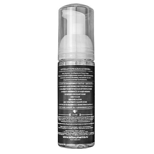 - Нанесите пенку на область свежей татуировки, распределите по всей поверхности и оставьте на 2-3 минуты. Допустимо небольшое покалывание кожи в месте нанесения.